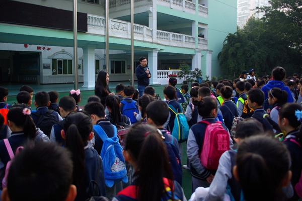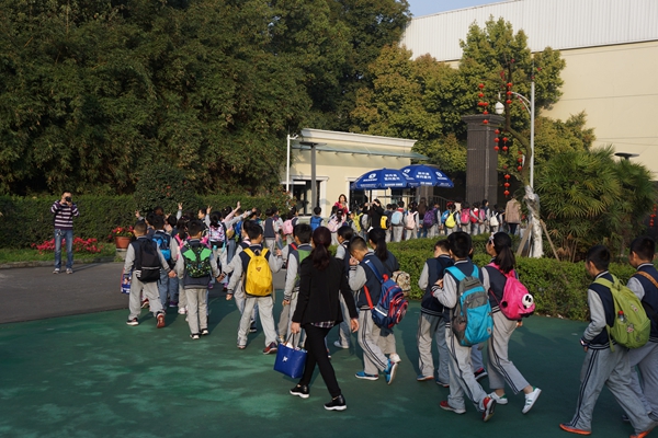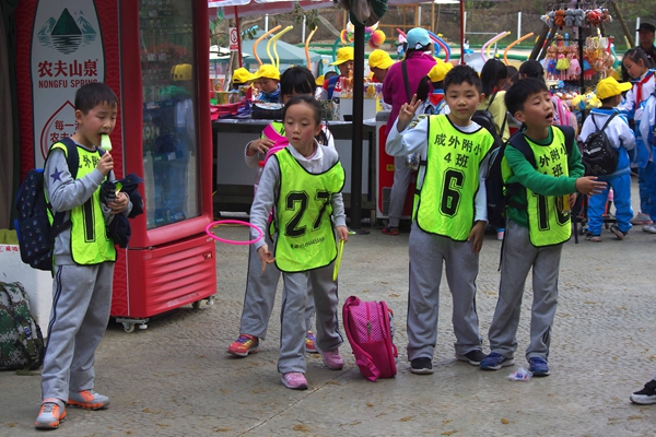 At four o'clock, students of each class returned to the gathering place in an orderly manner, after saying goodbye to the "Squirrel Horde", they returned to our lovely campus.