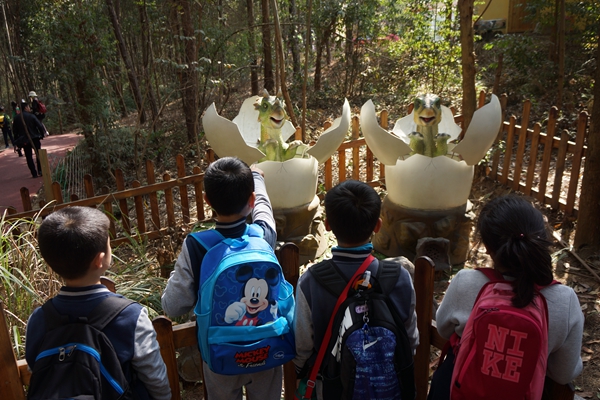 After arrived at the Squirrel Tribe, children in each class were led by teachers to visit "Squirrel Paradise" in the natural oxygen bar, they were surprised to find that "the cute small squirrel is really agile". They also visited "Dinosaur Tribe", where kids walk around in the lifelike "stealing egg dragon", "triceratops", "pterosaur"...