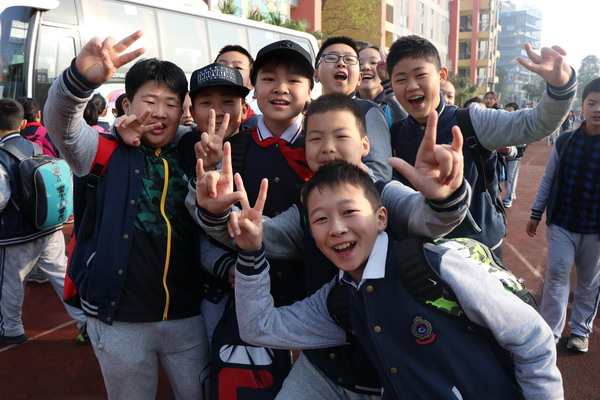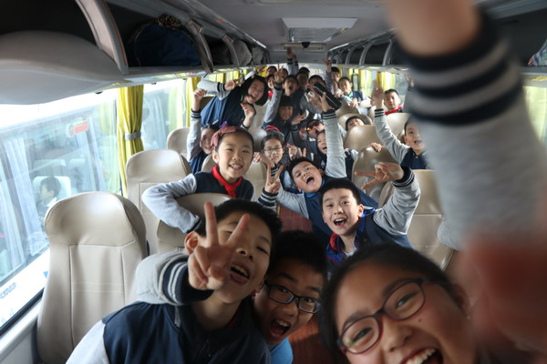 前往基地的路上,孩子们都很兴奋