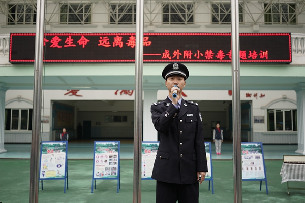 警察叔叔向同学们讲解毒品知识