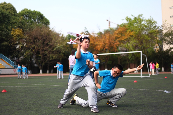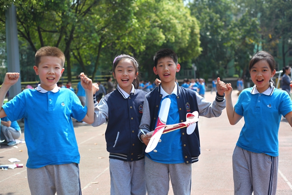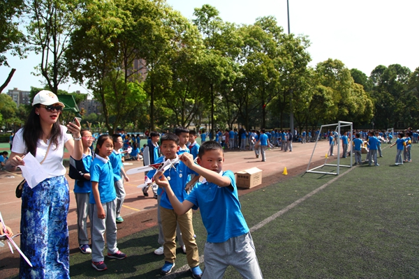 The match was very furious. Students tried their best, and the “airplane” flied highly and stably. The record was broken one time after another.