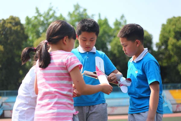 4月26日下午,我校四年级组在足球场举行了橡筋动力飞机模型比赛。