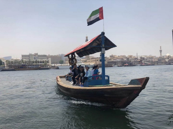 6月19日,同学们在酒店用完早餐后,前往游览古老艺术区巴斯塔吉亚,感受迪拜最古老的文化。随后,坐水上的士参观黄金香料市集。午餐后,前往沙漠,上一堂户外的文化课 —— “沙漠冲沙”,在冲沙之前,导游详细讲解了有关阿联酋的历史和文化。晚上,前往沙漠中的营地,骑骆驼,看表演,吃风味烤肉。