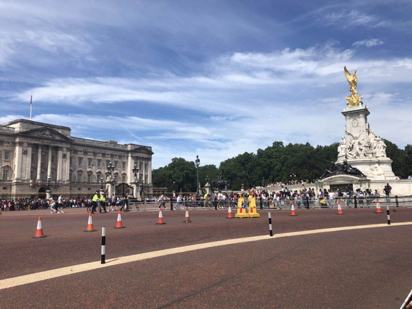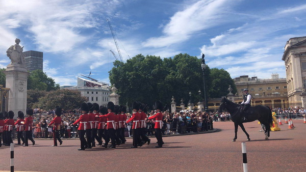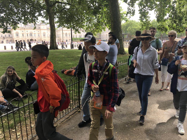 6月23日,孩子们来到了伦敦。湛蓝湛蓝的天空,庄严肃穆的白金汉宫,威风凛凛的禁卫军,隆重的交接典礼,静谧的圣詹姆斯公园,慷慨激昂的游行演讲,成为英国皇室文化的一大景观!