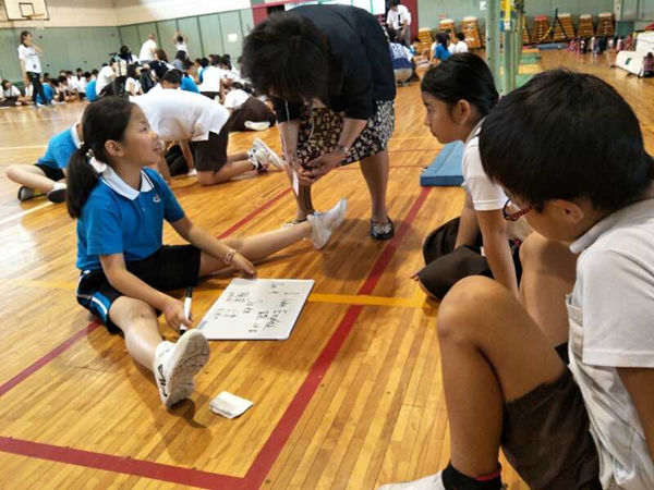 We divided into small groups to communicate with Japanese children using English, gestures and writing.