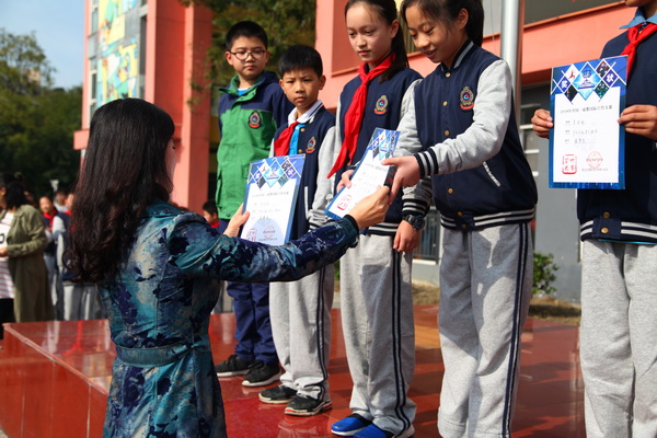 我校领导为在“中国成都国际空竹大赛”中获奖的同学和老师颁奖
