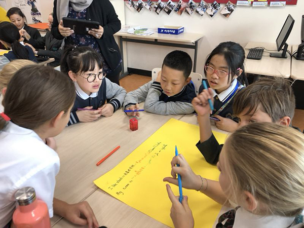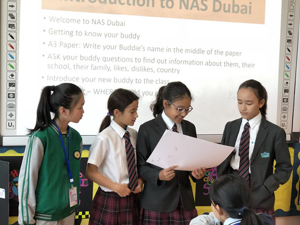 1月20日,迪拜游学一团的全体师生来到迪拜当地的国际学校诺德安格利亚国际学校。孩子们插班到六年级的各个班级,和学校的孩子们进行为期两天的插班研学。孩子们在两天的学习中将体验学校的英语课程、历史课程、数学课程、戏剧课程、计算机课程和体育课程……在老师们精心的组织下每个班级的孩子都进行了互动的游戏。一整天的学习,孩子们和班级的同学友好交流,课堂氛围其乐融融,自然也收获颇丰!