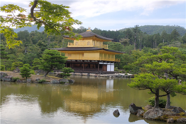 之后前往古都京都---金阁寺,正式名称为鹿苑寺。因为寺内核心建筑“舍利殿”的外墙全是以金箔装饰,所以称为金阁寺。
