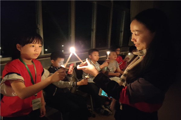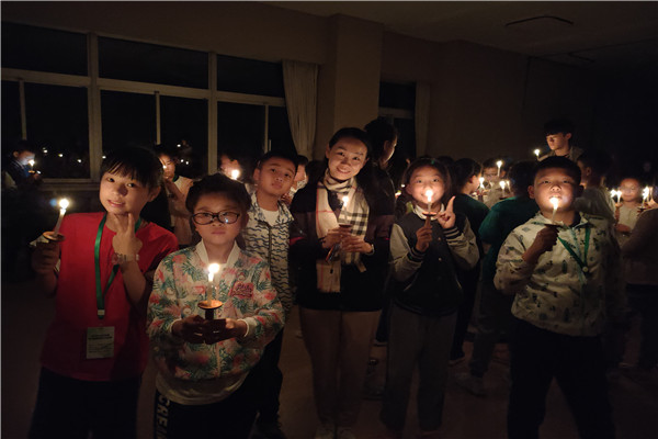 到了晚上,教练还给我们安排了丰富多彩的烛光晚会,让我们心旷神怡。最后一首《成都》,使其达到高潮,也是我们对全世界人民的祝福……