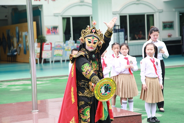 漆老师是四川省成都市三花川剧团青年演员,也是著名巴蜀笑星、优秀川剧小花脸演员“矮冬瓜”的徒弟,曾多次随团参与各种演出。川剧,是我们四川的传统文化,也是国家首批非物质文化保护遗产,我们熟悉的变脸、吐火、滚灯,就是川剧的三大绝活。漆老师的精彩表演,让同学们意犹未尽。希望大家在感受传统文化魅力的同时,还能做到保护文化遗产,弘扬民族精神。