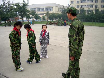 队的解放军叔叔给我们做正规的军事训练。在军训中我们将进行队列训练、军体拳