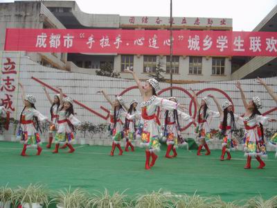 11月26日下午,我校金太阳艺术团受成都市教育局之邀,到金堂竹嵩参加了“成都市城乡学生联欢活动”。艺术团的同学以优美的舞姿、投入的感情演绎了一曲藏族舞蹈。作为开场的第一个节目,他们的表演赢得了当地中小学生及父老乡亲的热烈掌声。演出之后,小演员们纷纷表示,他们非常愿意为农村的小朋友们演出。同时,他们表示,同在一片蓝天下,却拥有不同的学习和生活条件,他们一定会尽力给农村小朋友以帮助,并更加珍惜自己现有的学习条件。