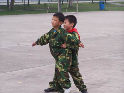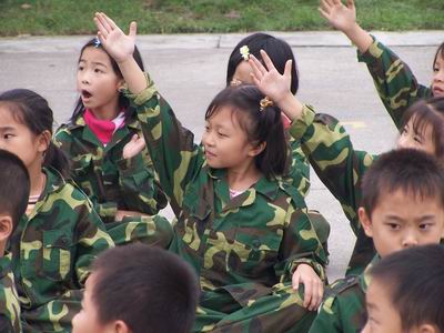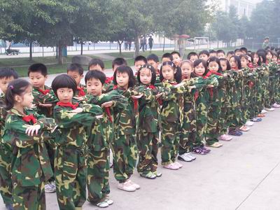 送别威武小兵,迎来可爱小兵。今天,是我们一、二年级军训的日子。这一天终于到来了,因为我们也想做一名小兵。虽然我们的动作还不标准,口号还显稚嫩,但一身大号的军装还是把我们装扮得更加可爱。不知道哪位老师偷偷拍下了我们的靓影,不过没关系。我们正好可以秀一把,哈哈......