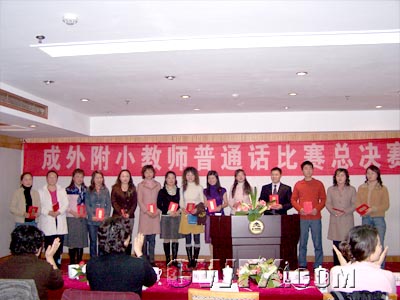 3月8日,我校举行了庆三八暨第二届教师普通话比赛。早上刚一上班,所有女同胞们都收到了一束美丽的鲜花,当然,更有温馨的祝福。下午,学校全体教师来到天仁酒店举行了隆重的庆祝活动。