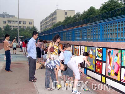 为了进一步营造和谐向上的艺术氛围,本届艺术节在组织和表现形式上又有了大胆的创新。在全体美术组老师的精心策划下,一幅反映成外附小美术教育风采的画卷—— 艺术墙将于不久展现在大家的面前。这条一百多米的“艺术长廊”,是全体师生共同创作的艺术精品,相信它必定会带给大家耳目一新的感觉。