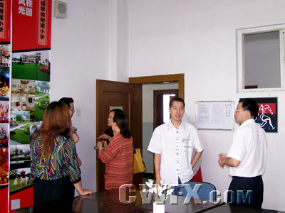 新加坡醒南小学的领导和老师参观我校的校园环境并与我校老师进行交谈。