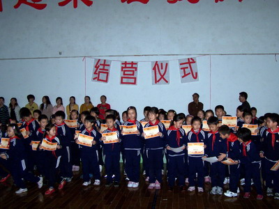 结营仪式于22日举行,由于下雨,同学们在教官的带领下来到室内体育馆进行汇报表演。