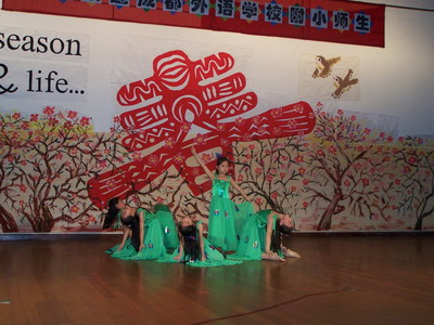 我校的学生表演舞蹈:《金孔雀轻轻跳》。
