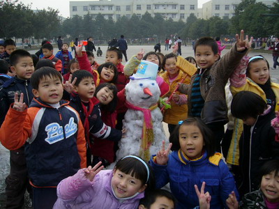 1月29日下午,在学校后操场,一年级的师生举行了一场堆雪人、打雪仗、爬雪山的户外活动。大卡车从西岭雪山运来了几大堆白雪,堆成了一座座的雪山,一年级6个班的孩子,在老师的带领下,玩起了堆雪人、打雪仗、爬雪山的游戏活动,孩子们热情很高,兴趣很浓,创造性思维得到大大开发,堆出了造型生动,憨态可掬的各种雪人。整个后操场洋溢着欢乐的气氛!一年级的小朋友过了一个欢乐的冰雪节!(李文老师报道,更多信息请浏览七色光画室:blog1/user1/36/archives/2007/8801.html)