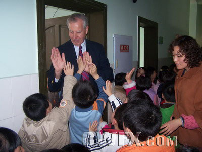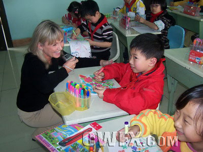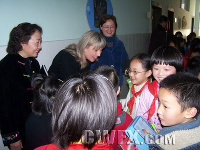 派恩学校小学部负责人Donna Stocks女士与孩子们亲切交流