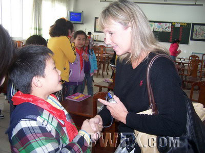 同学们用自己制作的手工作品表达对美国客人的热烈欢迎