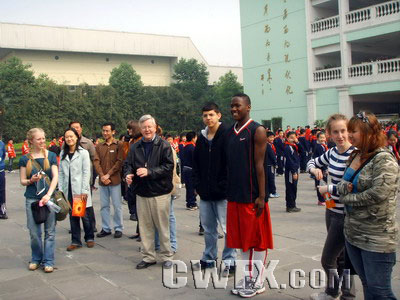 2007年4月11日,美国华盛顿中学校长Sax先生率领的友好访问团一行八人对我校进行了短暂访问。我校英语专家殷校长、德育处钟主任代表学校行政向美国客人介绍了我校的情况,并带领客人参观了学校。