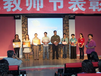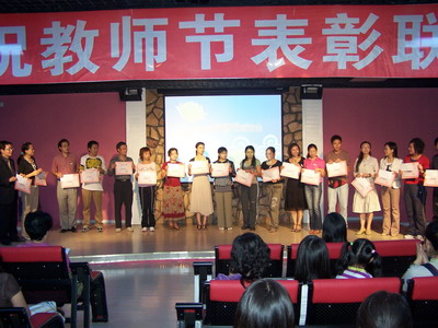 9月10日晚上,成外附小五楼教师活动中心张灯结彩,喜气洋洋,来自两个校区的二百多名教师欢聚一堂,共同庆祝第23个教师节的到来。这是两个校区的老师们在成外附小这个大家庭中首次携手联欢,也是教师活动中心装修一新之后首次向大家开放,因此具有重要的历史意义。