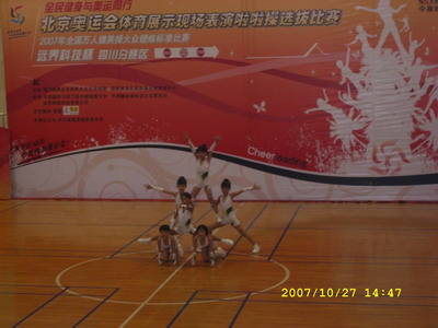 10月27、28日,在为期两天的2007'全国万人健美操大众锻炼标准大赛(四川赛区)的比赛中,我校健美操队以出色的表现获得了大众三级的一等奖、少儿一级一等奖和少儿三级二等奖,为学校争得了荣誉。(报道:何东生 详细信息请浏览:http://www.cwfx.cn/blog/user2/2526/archives/2007/10820.html)