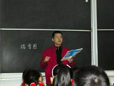 继11月28日我校语文低段教研活动之后,29日上午,我校语文中高年级再次进行了年段教研活动。这次活动分别由四年级和五年级的四位老师进行现场上课和说课。图为四年级汤波老师正在执教《乌丢丢的奇遇记》阅读汇报课《走在爱的路上》。