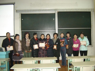 弥校长为执教年段和校级教研课的老师们颁奖荣誉证书