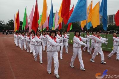 连绵数日的秋雨也无法阻挡我们的热情。今天阳光明媚,我校如期举行了第八届体育节。在体育节的开幕式上,各年级方块踏着整齐统一的步伐经过主席台,一段段简短精炼的口号更是呼出了他们的气势。不仅如此,在开幕式上各年级都表演了精心准备的团体操,同学们个个精神抖擞随着音乐的节奏舞动着无数颗纯真的心。