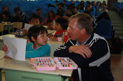 四月十六日上午,美国The Oakwood School 师生一行十六人来到我校,与我校学生进行了愉快的交流互动。在英语课堂上,他们为活泼的学习方式和孩子们出色的表现而鼓掌;美术课堂上,他们与孩子一起合作剪出了可爱的狮子王;体育课上,他们认真学习中国功夫的样子真是和小朋友一样可爱。