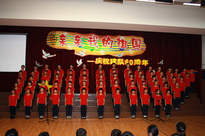 10月13日下午,我校举行了主题为“亲亲我的祖国”——爱国歌曲展演活动,此项活动是本期爱国主义教学的系列之一,同时也以生动活泼的形式,纪念少先队建队60周年。