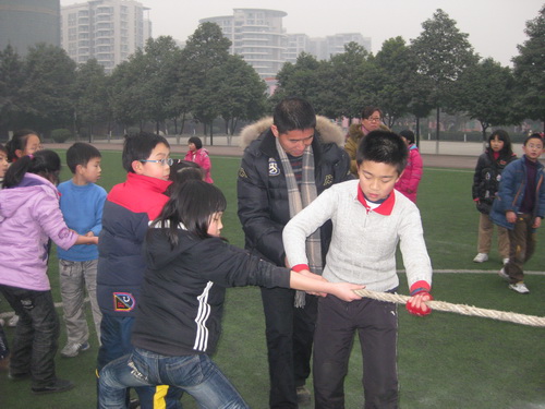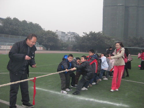 2009年1月15日下午,二至四年级拔河比赛(决赛)在后操场举行。进入决赛的班级在赛场上一决高下,争夺年级的冠亚军。