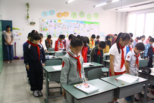 27日,四川省将停止公共娱乐活动,8时2分起,全省人民默哀3分钟,汽车、船舶鸣笛,防空警报鸣响!我校也积极响应,全校师生放下书本,肃静的站直向芦山遇难同胞默哀3分钟。逝者已矣,生者坚强,怀着对4.20芦山地震遇难者的一片痛心惋惜之情,我们因该化悲痛为坚强。芦山,加油!四川,加油!中国,加油!