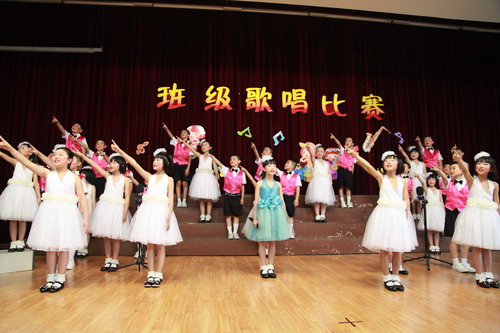 5月22号,我校“年级歌唱比赛”进入第三天,三年级的同学为大家带来了精彩的表演。不同风格的歌曲,形式各异的表演,颇具异国风情的服装让观众们进入了五彩缤纷的世界,体会到了美国、澳大利亚、内蒙、台湾等地方的音乐魅力。孩子们用他们天真烂漫笑容的诠释了生活的美好,更用他们稚嫩的歌喉唱出了童年的幸福。我们衷心祝愿孩子们能把这份快乐,这份美好,这份幸福永远保持下去!