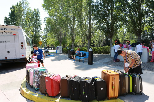 尽管是美国国庆,又遇大巴车故障,师生们仍然情绪高昂,井然有序。
