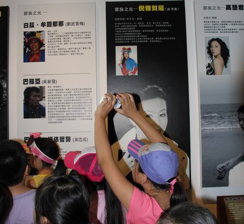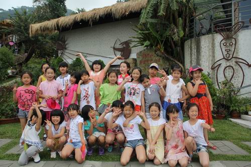 7月23日,金太阳艺术团的孩子们来到了阿里山,领略了别具一格的邹族文化。阿里山邹族文化部落位于台湾省嘉义县阿里山乡乐野村,海拔1300公尺左右的高山茶园中,歌曲《阿里山的姑娘》又名《高山青》中的“高山青,涧水蓝,阿里山的姑娘美如水啊,阿里山的少年状如山……”中所指的阿里山的姑娘、少年,正是阿里山邹族原住民的写照。阿里山的原住民是最早与荷兰通婚的民族,所以,他们的后裔都具有外国人的血统,高鼻子,大眼睛,非常漂亮。