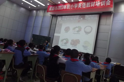 On October 16th morning , teachers from every district in Chengdu participated in 2013 autumn English textbooks training activities in Qingyang district. Ms Liu from our school took one of the lesson to show the second lesson of the unit and letter teaching efficiently. Ms Liu got high praise from all the teachers.