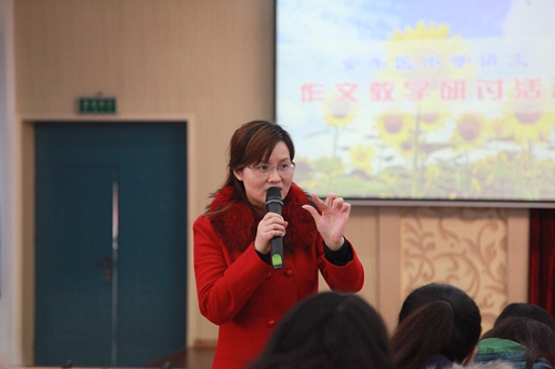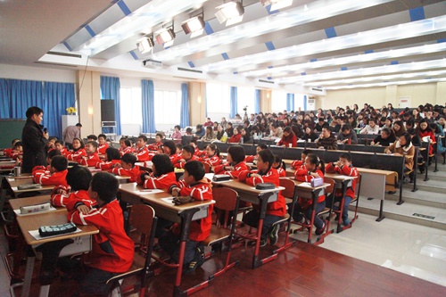 On November 20th afternoon, Jinniu District primary school Chinese composition teaching seminar was held in my school . Nearly three hundred Chinese teachers took part in the activity. Chinese teacher in our school Mr Zhang and the children in class seven grade four gave a special composition class together. Mr Zhang showed ingenuity design and the sentiment , as well as the children gave excellent performance, which left a deep impression to all the teacher.