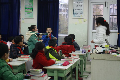 12月20日早上第一节课,成都师范学院的王国艳副教授带领成都高新区南区大源学校的老师一行8人到我校五年级听取刘菲老师的《典范英语》示范课。我校五年级组本学期在钟灵滋校长的带领下进行了《典范英语》的探讨性教学,利用晚间活动的时间开展,取得了良好的效果。今天的示范课是小学阶段《典范英语》教学的一次综合展示,与会老师给予高度评价。