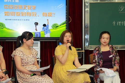On May 21st , the fourth grade Chinese group teaching research activities meeting of Jinniu District was held in our school, which was hosted by our school teachers in the fourth grade of Chinese group . It aims to present a complete research process .The research activities in the class as the core, and it has received the good research results by class observation, discussion class methods, continuous improvement of teaching design.