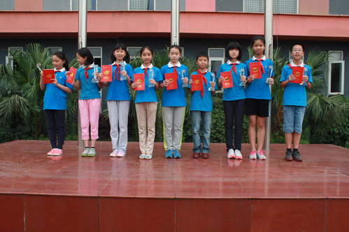 On May 26th, the fifteenth weeks morning gathering was held in Zhonghai campus. On the children's day, the fifth grade students will change the classroom into a trade market. They will exchange their own idle items with others. And they will learn how to evaluate and choose what they need. Then Ms. Zhu informed the specific rules of the event. At last, the leaders of school gave the awards for "Jinniu District good student", "Jinniu District outstanding student cadres" and "Jinniu District advanced class" .