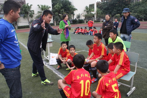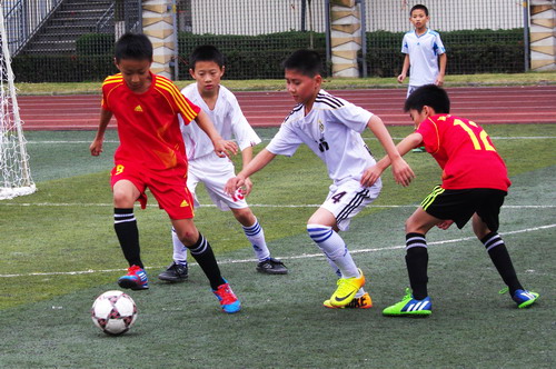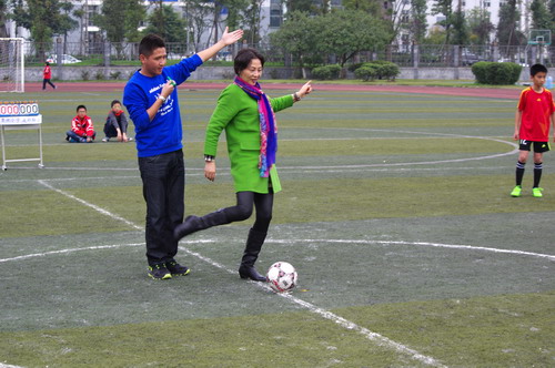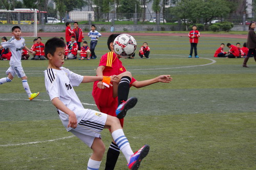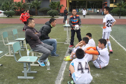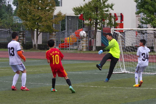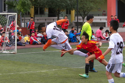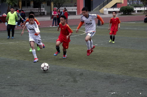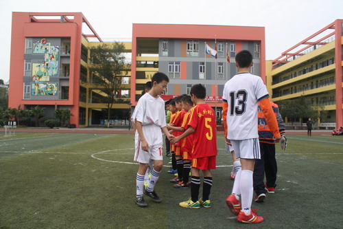 11月11日,主题为“运动成都 活力金牛 放飞梦想”的2014成都青少年校园足球联赛(金牛赛区)的比赛在我校进行了第一轮比赛,吴校长亲临现场参加了开球仪式。在比赛中孩子们顽强拼搏,积极防守,虽然赛后比分不甚理想,但他们发挥出了自己的真实水平。同学们,你们努力拼搏,奋勇进取,虽败犹荣,让我们总结经验,取长补短,在接下来的比赛中超越自我!