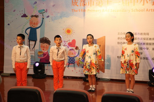 5月14日,我校学生参加成都市第十一届中小学生艺术节。本次艺术节朗诵比赛在川音附小学举行,邀请了多位知名专家担任评委。我校的朗诵“林中乐队”作为金牛区的一等奖,代表金牛区参加了成都市艺术节的决赛,在成都市各区县二十六所中小学中名列第三名!孩子们声色并茂的朗诵,极富感染力,充分展现了我校学生的综合素养和精神风貌!