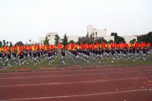 10月29日,我校中海校区举行第十五届校园体育节。开幕式后的团体操表演也异常精彩,五年级的同学们利用课余时间排练了以“汇聚、发展、翱翔、和平”为主题的团体操,各班同学全员参与,团结协作,为我们献上了一场宏大的赞礼。五、六年级的同学们还表演了广播体操“七彩阳光”,整齐划一的动作,专注的表情,震撼人心!