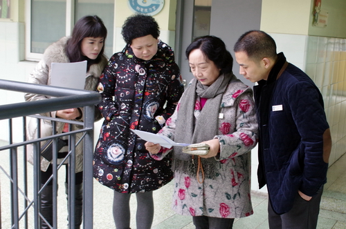 我校弥晓蓉校长、岑际伦副校长和五年级的老师们参加调查问卷