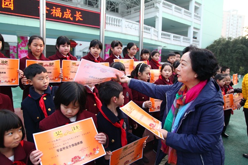 学校领导为各班代表颁奖