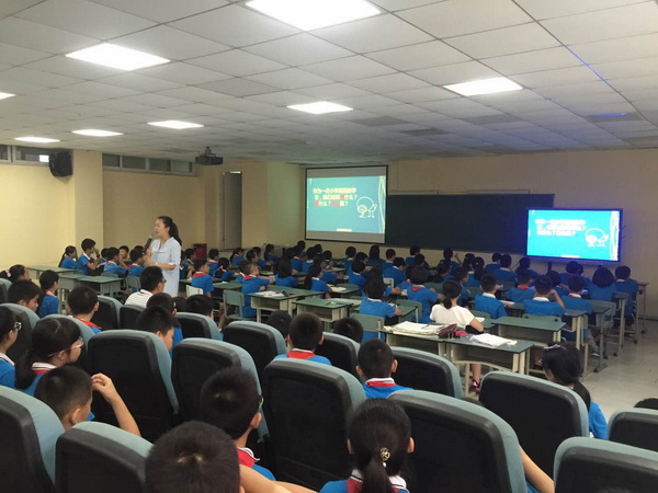 9月12日,我校五年级开展德育教育专项培训。五年级的同学来到新的校区,对新校区的日常行为规范还不了解,德育处朱珊珊老师向同学们介绍了中海校区的校园特点,并讲解了中海校区的学生行为准则。怎样排队?怎么下楼?怎样活动?同学们认真倾听,详细记录要点,不时举手提问!