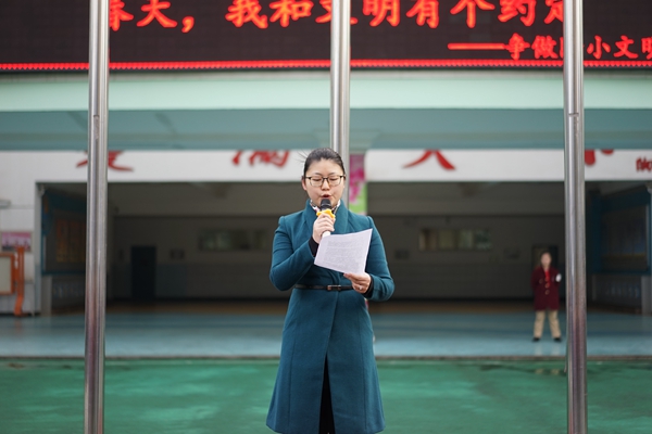 3月20日,我校举行第六周集体朝会,本周集体朝会的主题是《春天,我和文明有个约定》